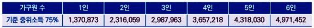 2.1 가구 소득이 기준 중위소득 75% 이하(단위 : 원)